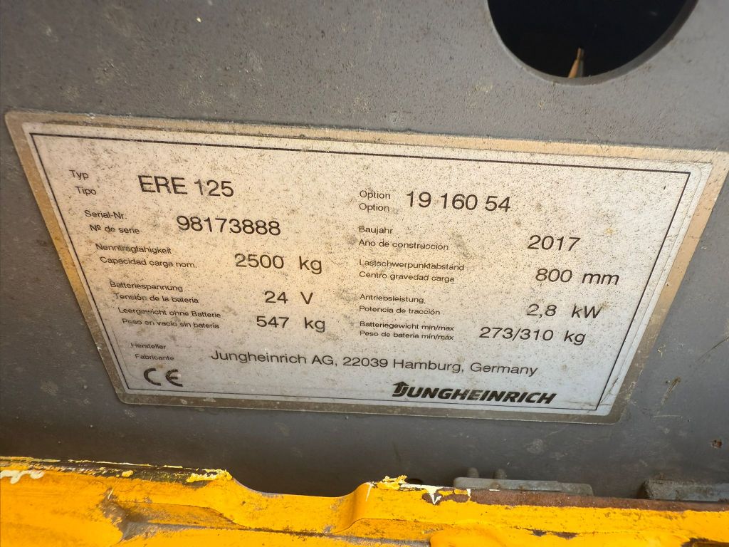 Hersteller: Jungheinrich Typ: ERE 125 Baujahr 2017 Akku 2017 Gabellänge 1600 Bauart: Niederhubwagen Antriebsart: Elektro Tragkraft: 2500 kg Baujahr: 2017 Stunden: 6285 Zustand: gut |