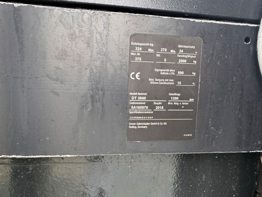 Hersteller: Crown Typ: DT 3040 Baujahr 2018/ Stunden 4256 Akku 2022 Bauart: Hochhubwagen Antriebsart: Elektro Tragkraft: 2000 kg Baujahr: 2018 Stunden: 4256 Zustand: gut |