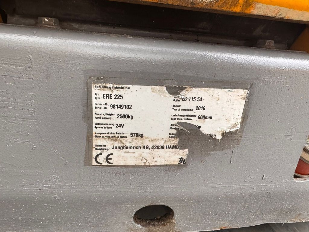 Hersteller: Jungheinrich Typ: ERE 225 Baujahr 2016/ Stunden 3710/EPS Lenkung Bauart: Niederhubkommissionierer Antriebsart: Elektro Tragkraft: 2500 kg Baujahr: 2016 Stunden: 3710 Zustand: gut |