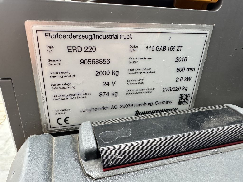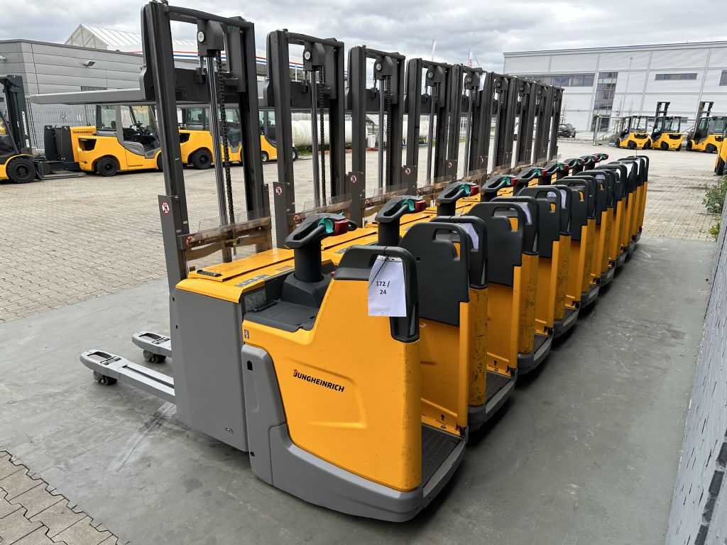 Hersteller: Jungheinrich Typ: ERD 220 LI Baujahr 2018/ HH 1,66M / 25 x Vorhanden Bauart: Hochhubwagen Antriebsart: Elektro Tragkraft: 2000 kg Baujahr: 2018 Stunden: 7000 Zustand: sehr gut |